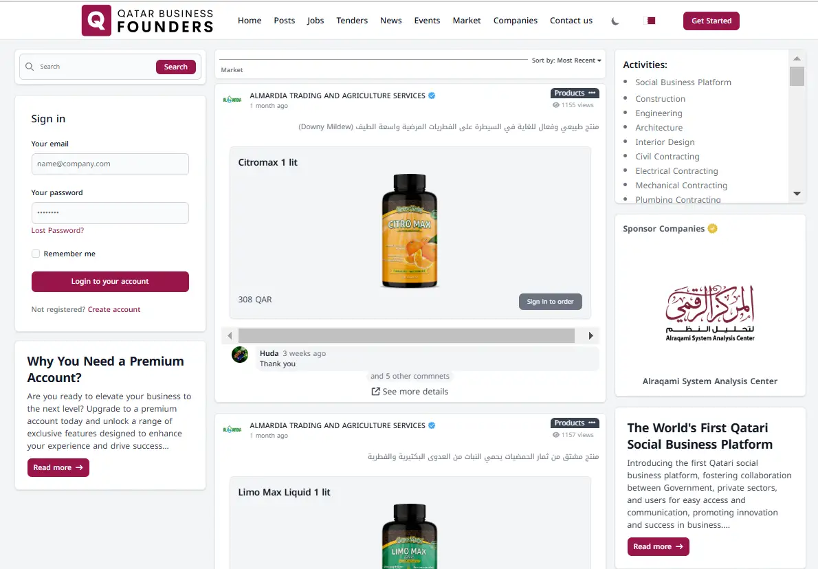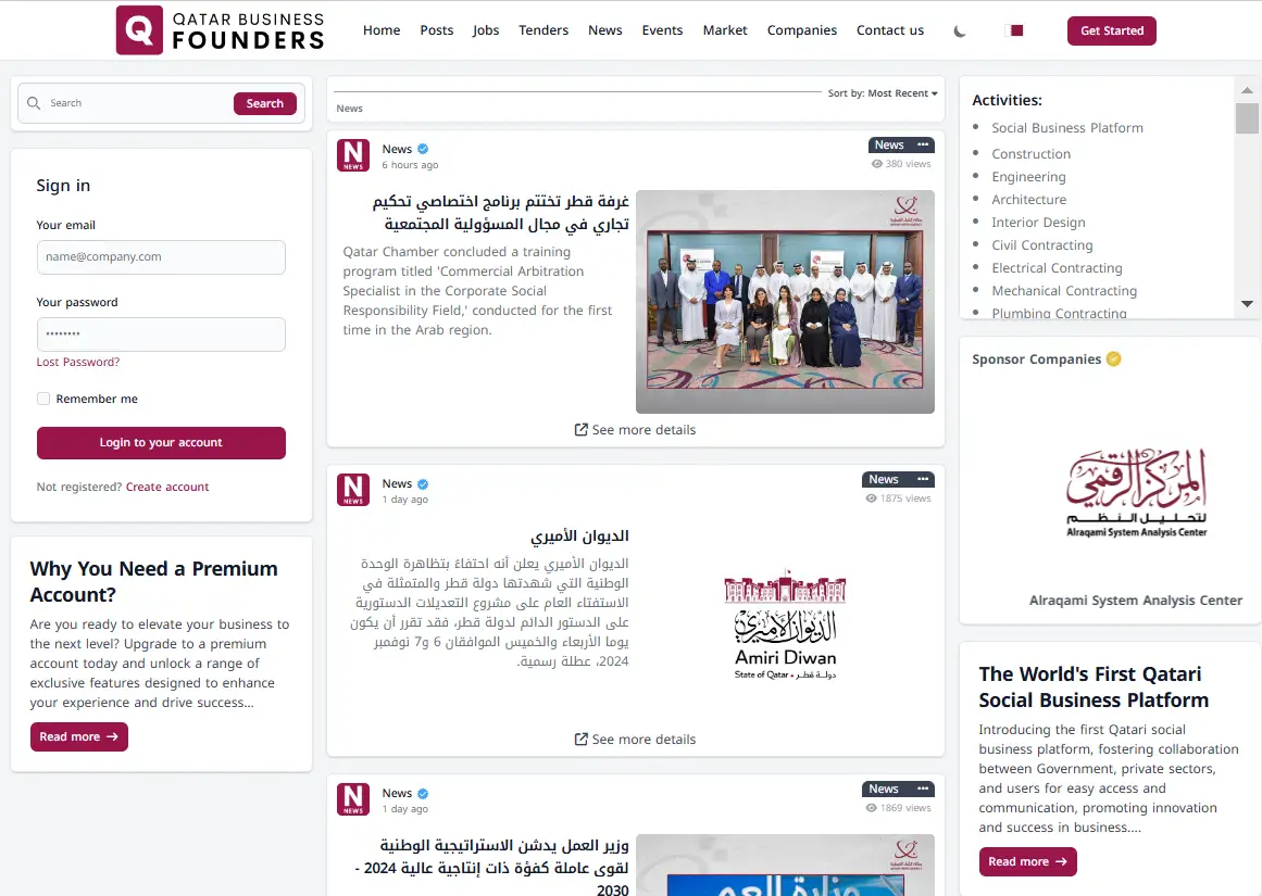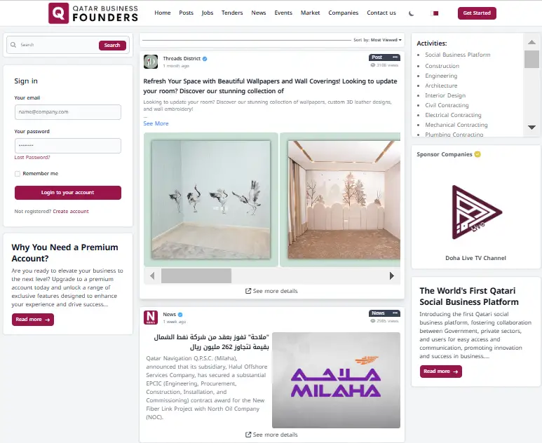 اول منصة اعمال اجتماعية عالمية بصبغة قطرية لتعزيز التعاون المثمر في مجال الاعمال بين القطاعين الحكومي والخاص و المستخدم لسهوله الوصول والتواصل في تجربة كاملة ومتطورة لتعزز الابتكار والنجاح في عالم الأعمال