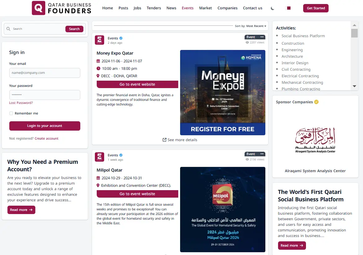 Qatar Business Founders هي أول منصة أعمال اجتماعية عالمية بصبغة قطرية تهدف إلى تعزيز التعاون المثمر بين القطاعين الحكومي والخاص. توفر المنصة تجربة متكاملة ومتطورة تجمع بين سهولة الوصول والتواصل الفعال، مما يساهم في خلق بيئة تشجع على الابتكار وتدعم النجاح في عالم الأعمال.